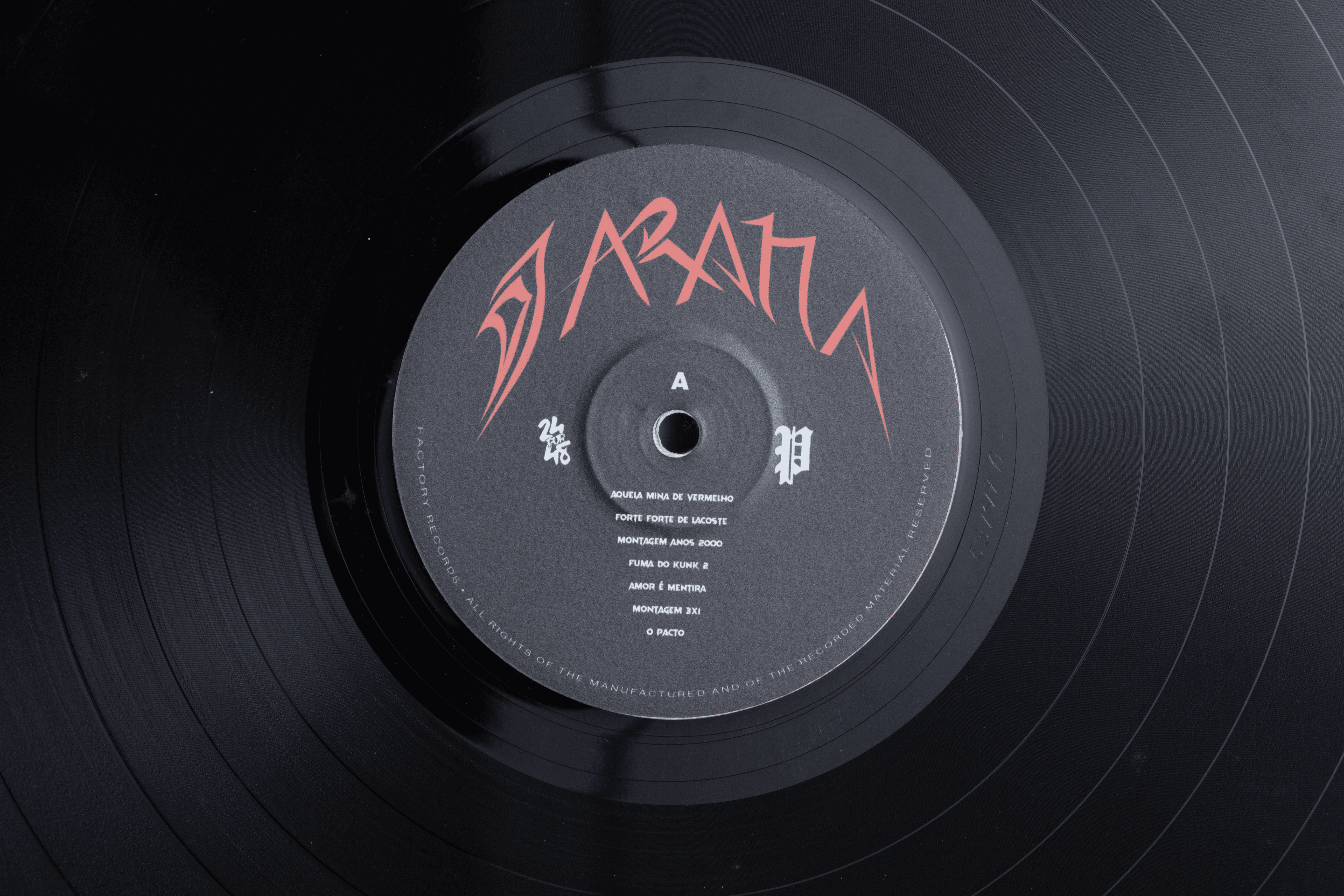 O projeto consistiu na criação de um lettering exclusivo para o vinil do DJ Arana, traduzindo a energia bruta e o peso característicos de sua sonoridade. A proposta uniu o impacto visual à construção de uma identidade coerente com o universo do artista.