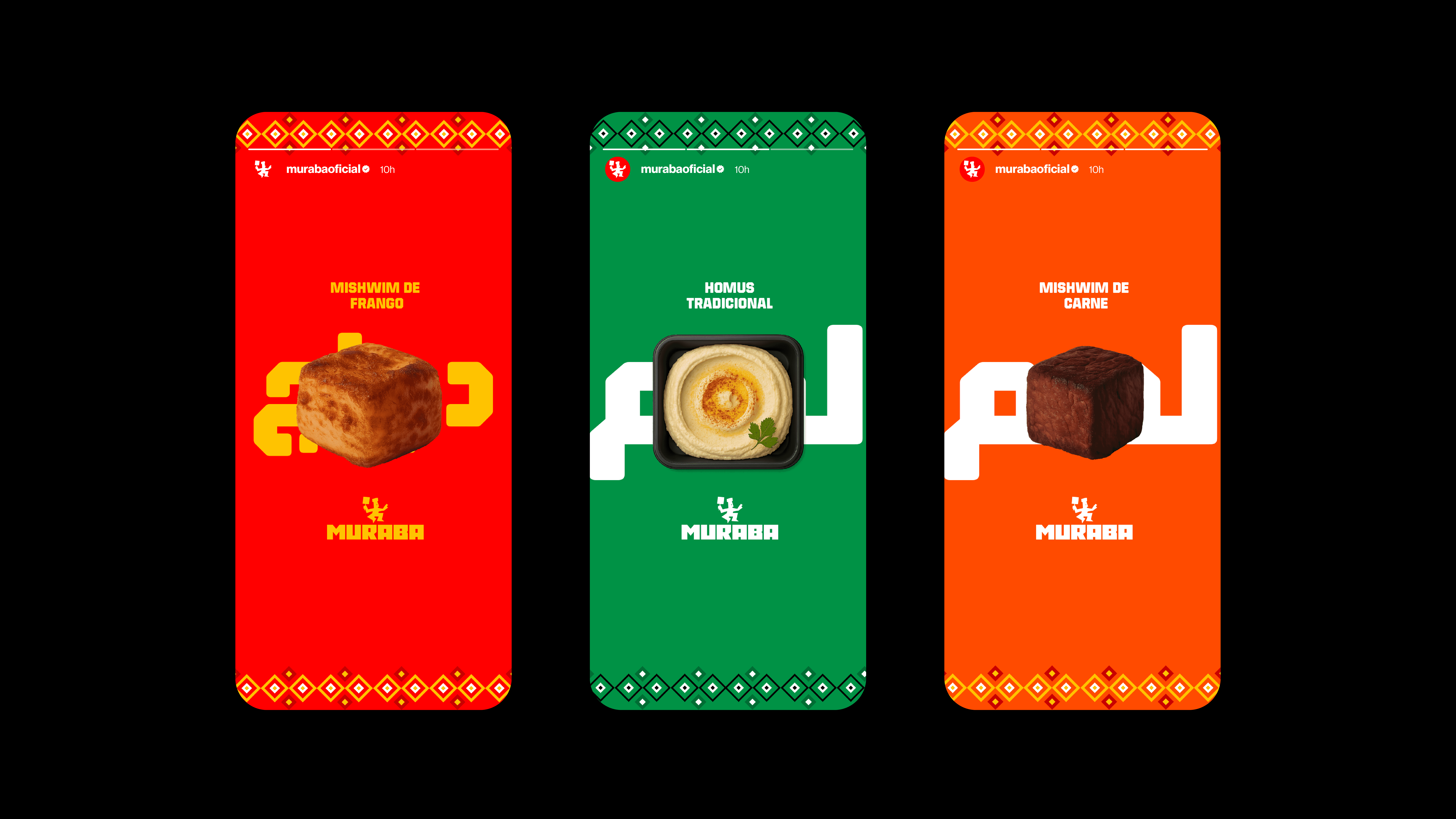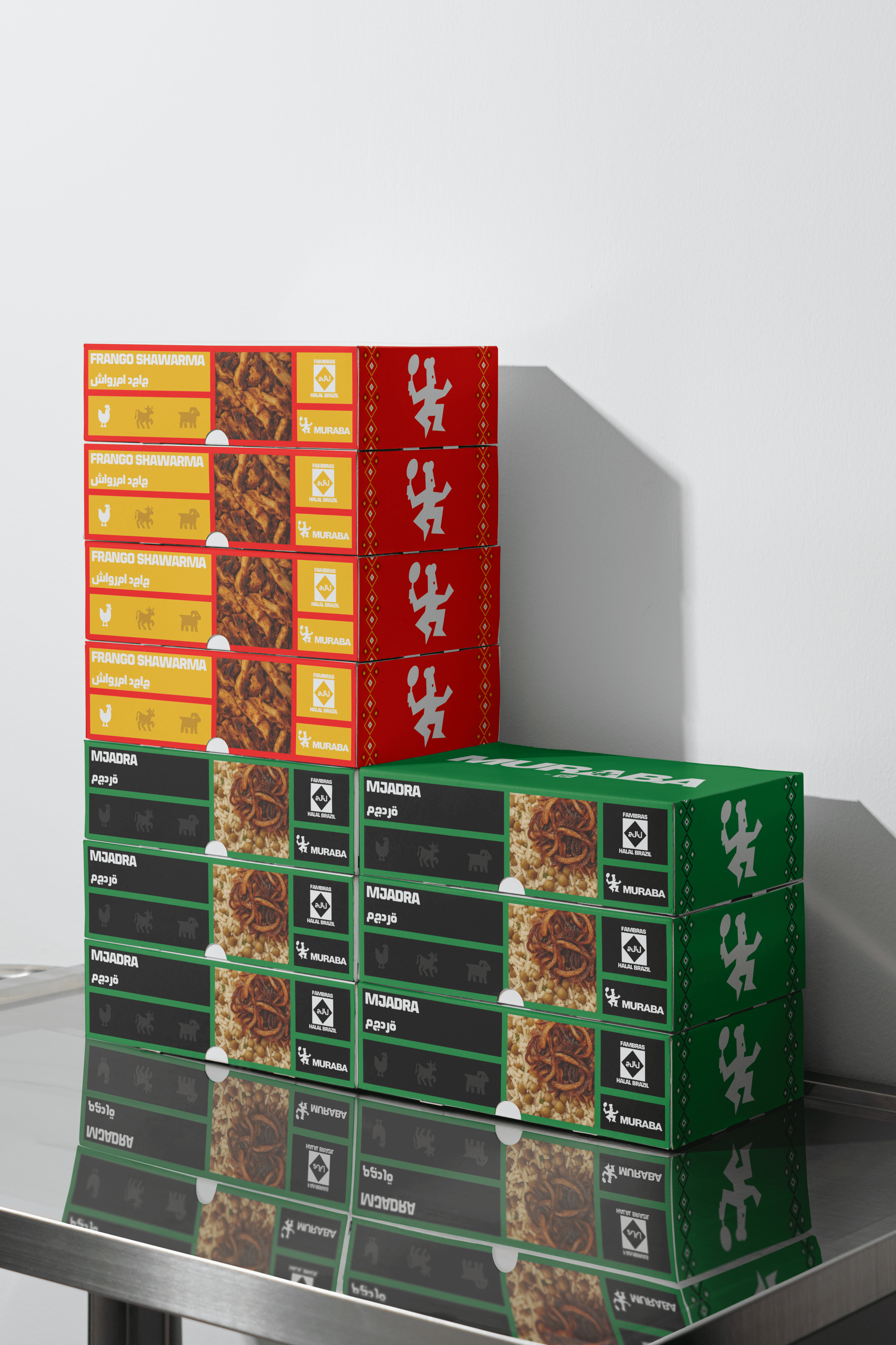 A proposta se materializa em uma embalagem modular e simbólica, com padrões geométricos inspirados na arte islâmica e paleta que reforça a origem dos alimentos. Muraba propõe um reposicionamento ético e cultural, aproximando fé, economia e design em uma linguagem que comunica cuidado e propósito.
